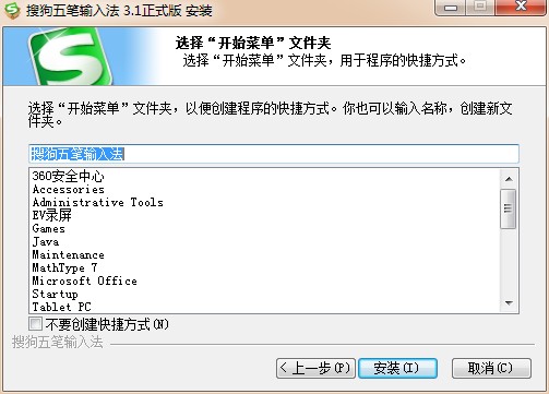 3、输入自己想要的开始菜单文件夹后点击安装