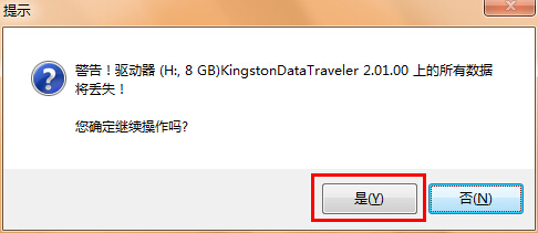 7.接着软件会提示警告窗口,我们确认u盘文件备份过后点击“是(Y)”按钮即可开始制作;如下图所示: