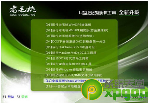 4、用U盘启动电脑,选择菜单11安装原版vista/Windows7/2008系统。