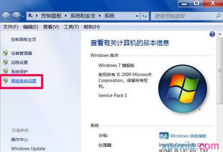 2 进入系统窗口后,在左侧选项中,选择“高级系统设置”这一项。
