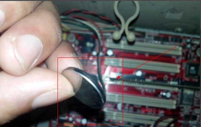 在主板上有一个很小的电池,把他取下来。在电池的一侧有一个小挡板,将其向外轻轻一拨即可取下电池,不要使劲乱抠啊。