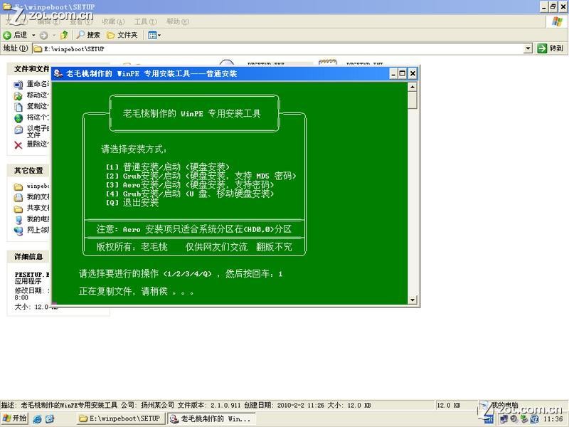 二,所以就需要借助PE来帮助格式化了,首先将系统和PE的安装包解压缩出来,这里采用的是深度的6.2,其实这个版本就附带了PE,不过为了方便使用没有集成PE的系统的朋友,这里使用了老毛桃的091111版PE: