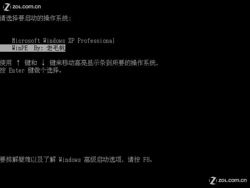 六,重启后会多出一个WinPE By: 老毛桃的选项,选择这个进入: