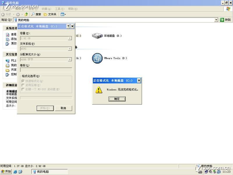 一,大家可以看到,直接在系统中格式化C盘,通常是不会成功的