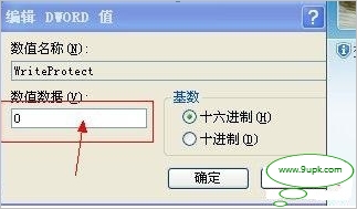 建立Dword值命名为WriteProtect并令其值为0(双击WriteProtect即可弹出设置对话框。重新启动电脑即可。