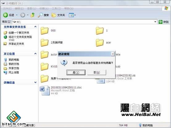 金山U盘病毒专杀在安全打开U盘的同时会建议用户使用金山急救箱查杀未知病毒,如图所示。