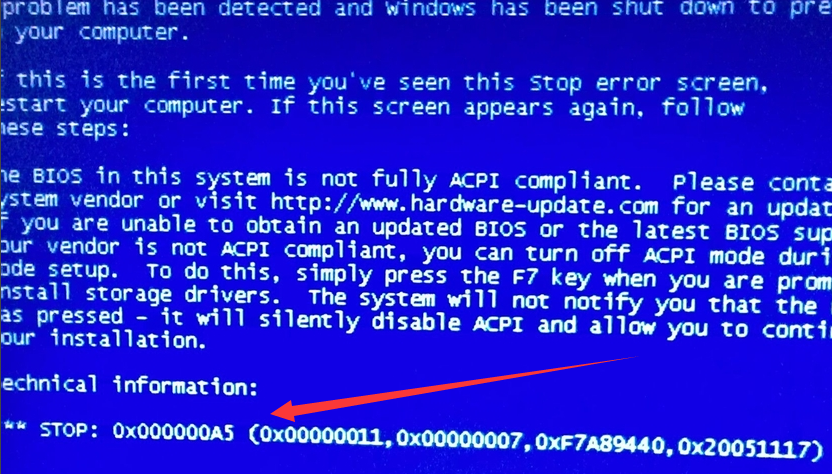 因为XP系统较老, XP的ACPI不支持BIOS中的一些特殊功能,安装Windows 7、Windows10则正常。