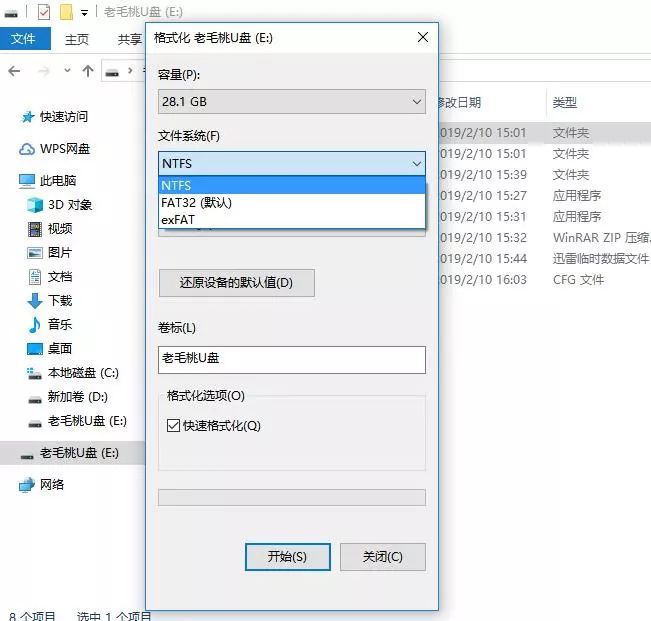 如果不是FAT32的格式,可以重新格式化选择U盘格式