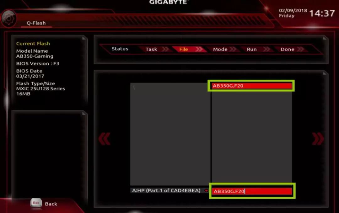 9/根据路径选中BIOS文件,并敲击Enter