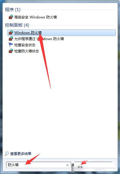 首先、展开WIN10系统电脑开始菜单,在搜索栏中输入“防火墙”,选择图例选项进入: