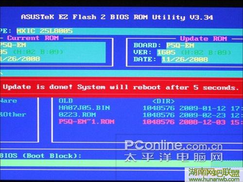 输入无误后,只需要轻轻的敲一下回车键,就可以自动开始刷新BIOS了。