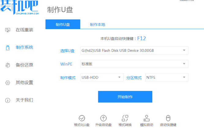 1、我们打开浏览器,将u盘插入电脑,搜索下载装机吧在线重装系统,点击制作系统,选择我们想要的win8系统开始制作。