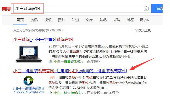 1.首先,我们准备了重新安装系统的软件。进入电脑左侧后,我们在浏览器中搜索小白系统官网,在官网下载小白一键重新安装系统软件。