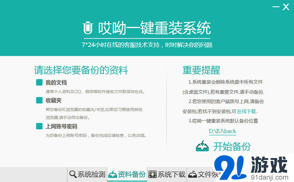 帮您备份保存在系统盘中的资料,也会为您自动保存上网帐号密码,保证您重装后资料不丢失,且正常上网。