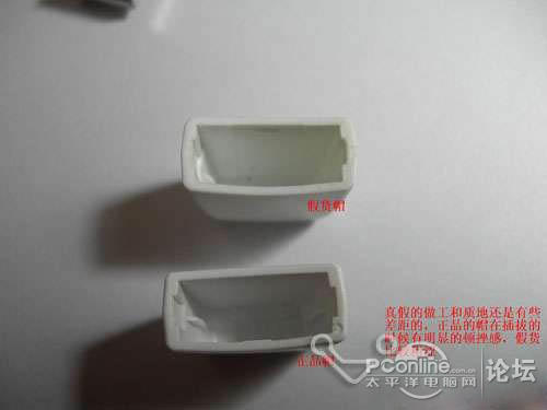 假货(上)正品(下) 正品的型号/容量信息,是采用激光印制,字迹有烧烫的感觉,用手轻触有凹凸感,而假货上的信息一般是墨水印刷,比较好辨认。