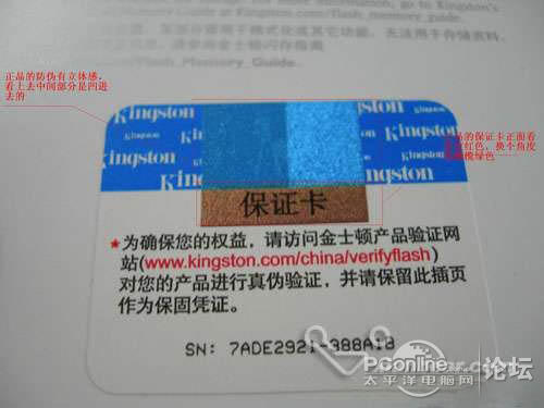 任何一个金士顿正品上都贴有金士顿代理商的防伪标,可以短信查询,也可以网站查询。假货(上)正品(下)