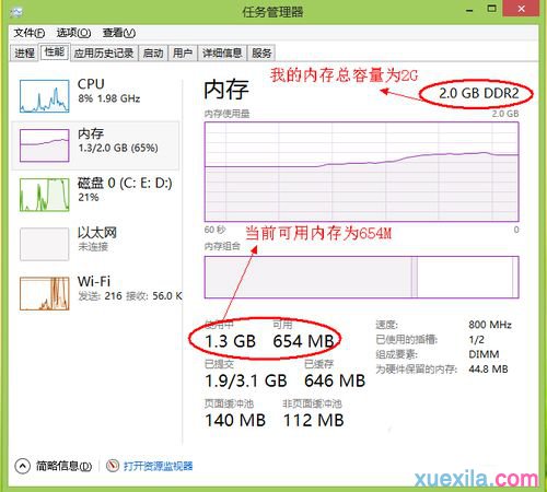 2.从这里可以看出来,我的内存可能空间不多。所以当我继续再打开另外一些程序的话,可用内存会越小,然后系统的反应也会越来越慢。