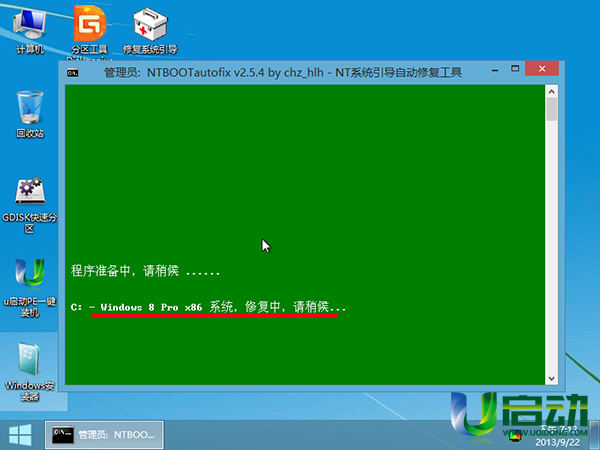 2、进入到u启动win8系统桌面后,双击打开“修复系统引导”工具,在弹出的窗口中点击“自动修复”选项,如下图所示: