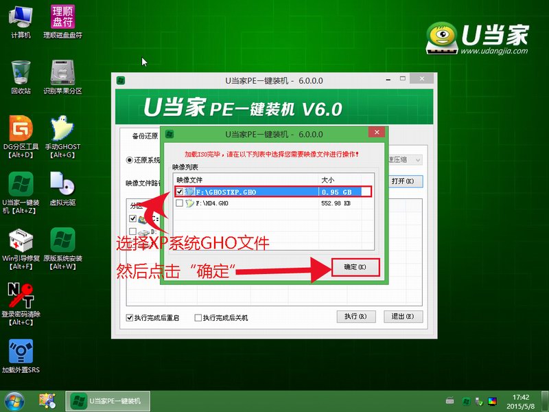 第四步:进入PE系统运行“U当家PE一键装机”开始安装XP系统。