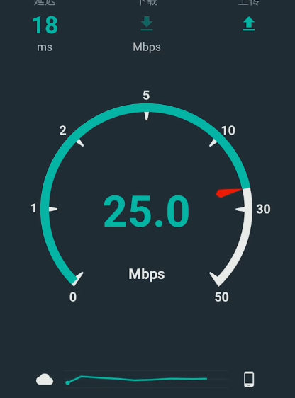1.先来看一下之前的网速,这里使用的是4G网络,我们使用测速软件测出网速大概在25左右。