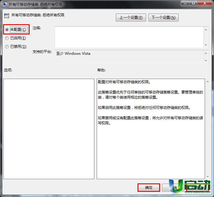 3、然后,点击“未配置”按钮,再点击“应用——确定”,