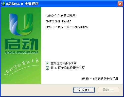 解压完毕,我们点击“完成”即可,然后我们运行U启动软件,如下图: