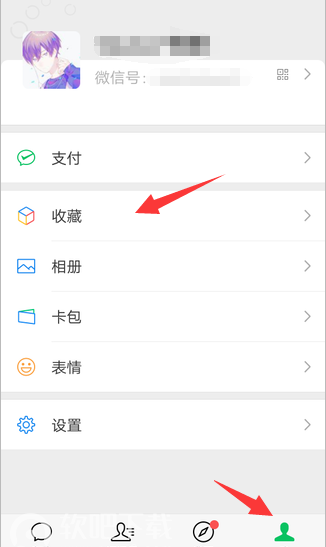 1.打开微信,点击[我]进入,然后点击[收藏]进入;