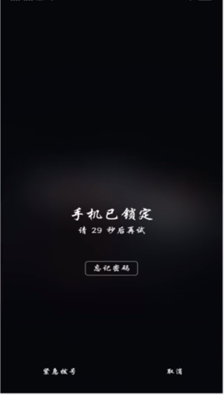 1、一般的手机都会有一个机制,就是当输入5次锁屏密码,但是全部错误的情况下,会锁住手机一段时间,一开始是30秒,之后一直叠加。这时候点击提示的“忘记密码”选项。