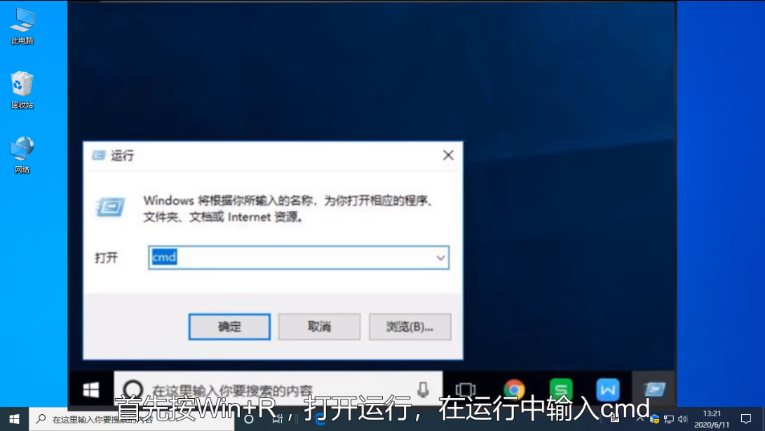 1、首先按win+r打开运行,然后输入cmd打开命令提示符。