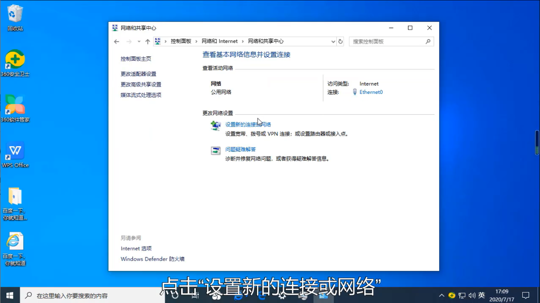 1、依次打开控制面板,网络和共享中心,在这里点击设置新的连接或网络。