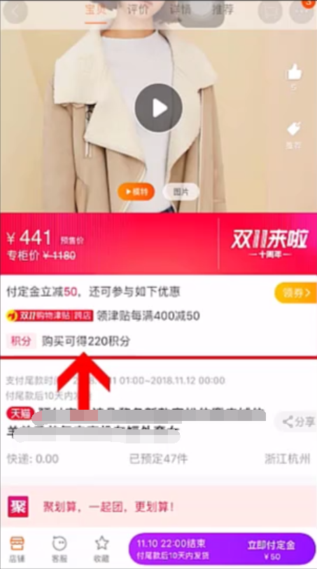 1、平时在淘宝网购的时候,选择商品时可以查看本次购买可以获得多少积分。