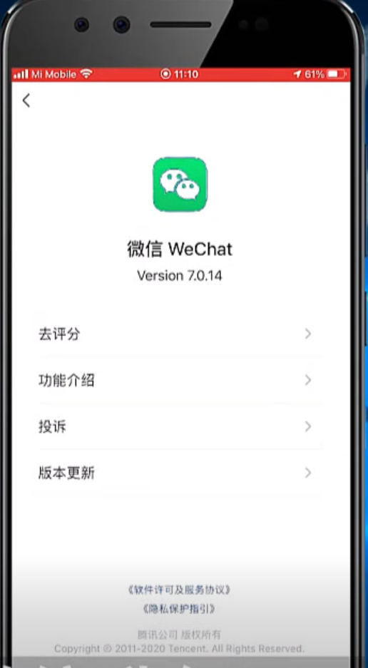 1.首先要微信升级至7.0.14版本,双击微信,点击我。