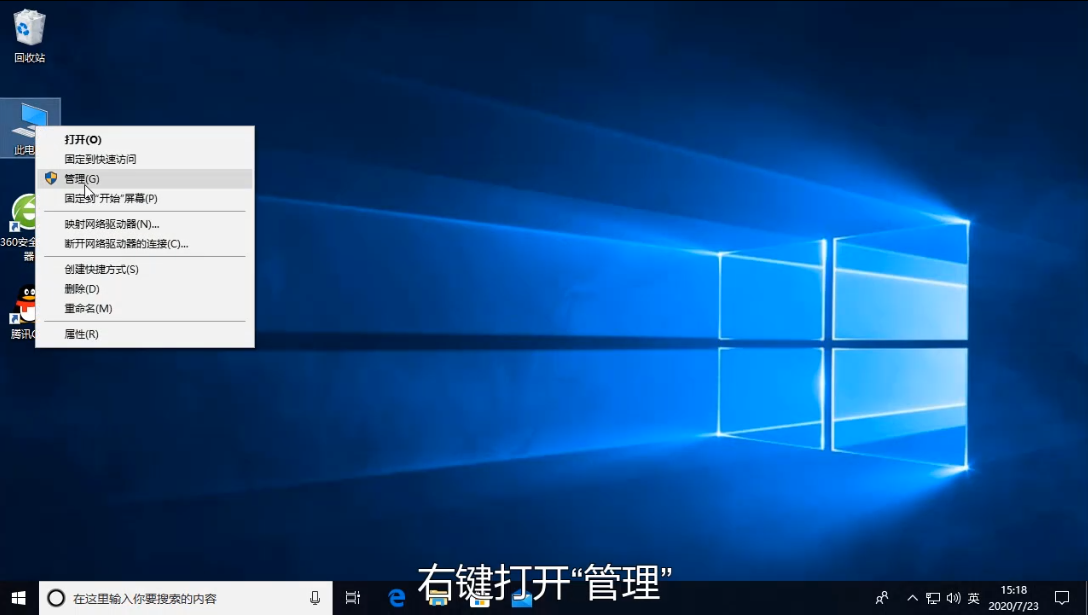 1、鼠标右键点击“计算机”图标,然后点击打开“管理”。