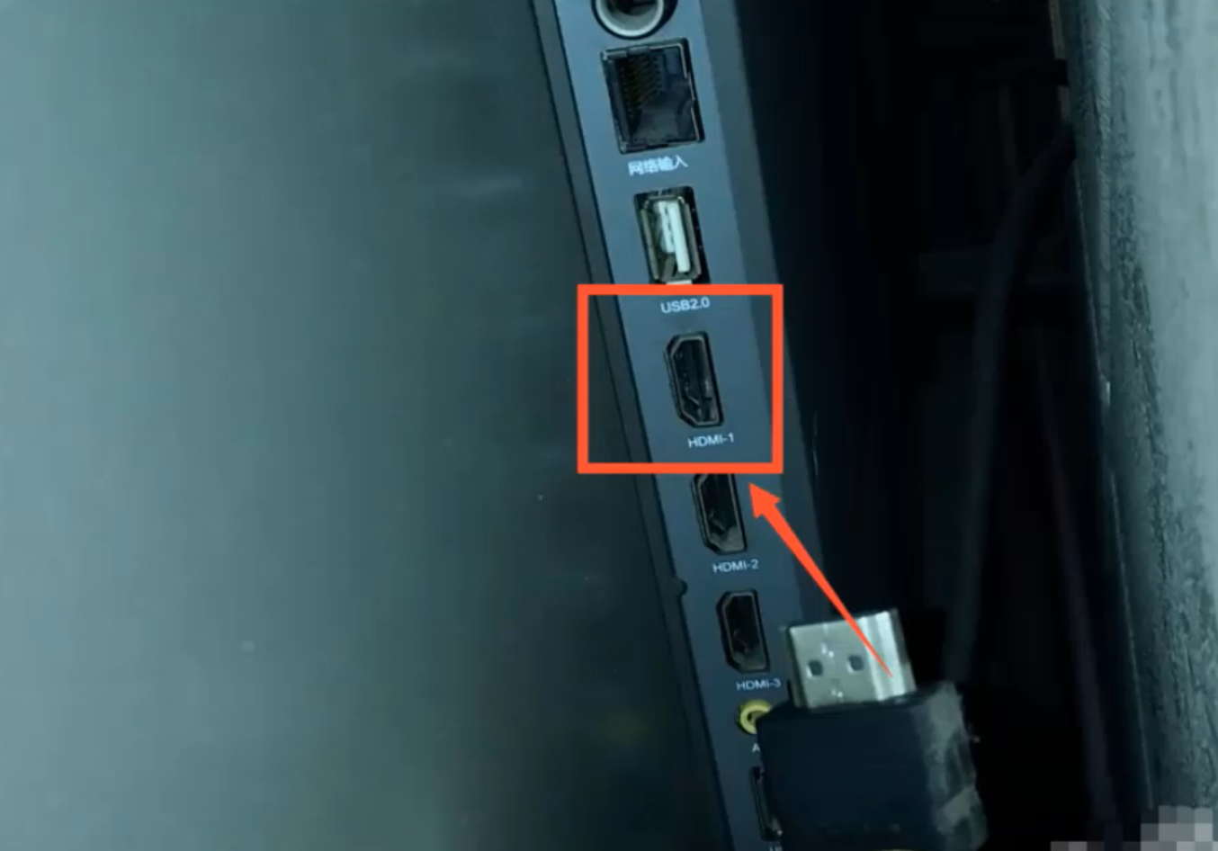 1、把数据线连接到电视机后面的HDMI1接口上。