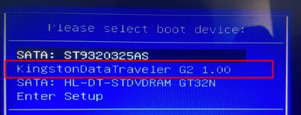 1、首先要将制作好的U盘启动盘插入到电脑中,然后按F12打开启动菜单界面,在弹出的界面中,选择第二项,之后回车。