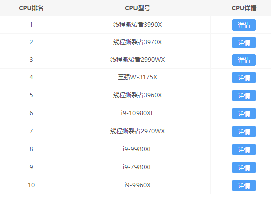 1、首先小编先给出cpu前十排行榜。