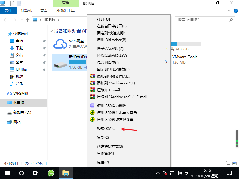 1、首先我们双击计算机图标,右键点击需要格式化的磁盘,选择格式化选项。