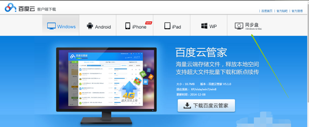 1. 首先从百度云官网下载客户端,选择百度云同步盘,按照自己电脑的型号,下载安装就可以。