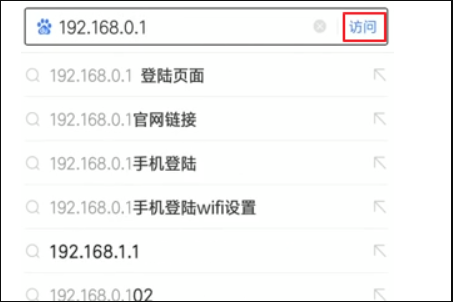 1、手机连接上路由器的无线信号后,打开百度,在搜索框中输入路由器默认的IP地址,点击访问。