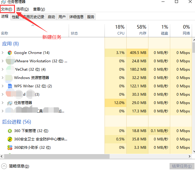 1、按住ctrl+esc+shift+delete强制召唤任务管理器