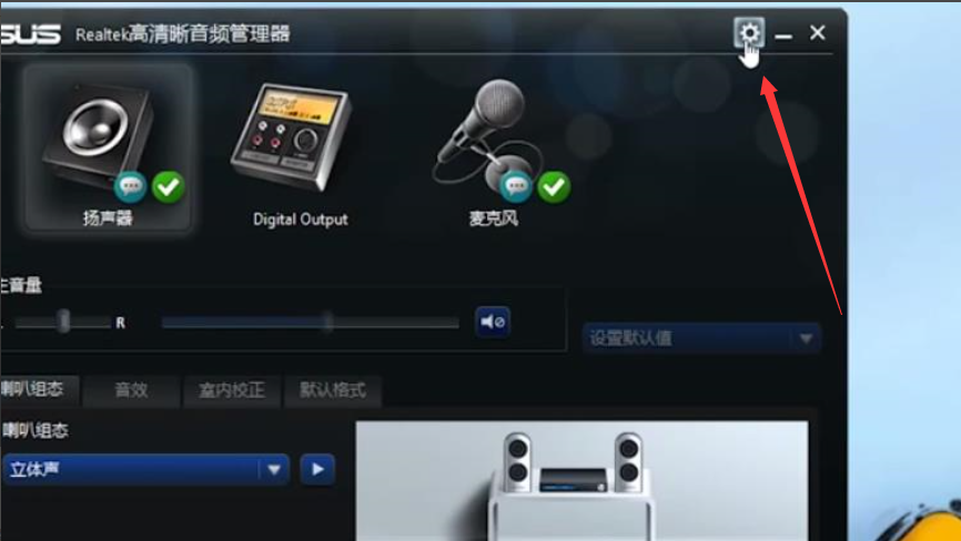 1、首先双击打开音频管理器,点击右上角设置,然后点击选项。