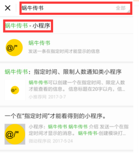 微信本身是无法定时发送消息的,这里需要借助一个小程序-蜗牛传书;首先打开并登录微信查找小程序,这里有两种渠道,一种是在微信主界面向下拉动页面进入,另外一种是在发现页面的最下方。