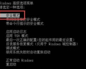 1、开机按f8进入高级选项菜单,选择“安全模式”按回车。