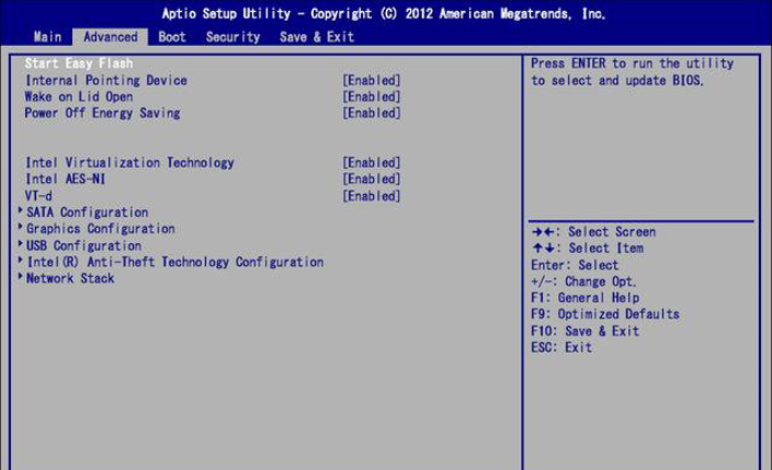 2、关机状态下,点击开机按钮,出现ASUS标志的时候不断地点击F4键进入Easyflash的界面,或者开机点击F2进入BIOS,在Advanced选项中,找到StartEasy Flash选项,点击回车按键,也可进入EasyFlash 。