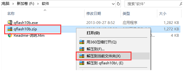 3、解压完成后我们就得到下图中的文件,我们鼠标双击界面中的Qflash.exe文件就可以开始使用了。