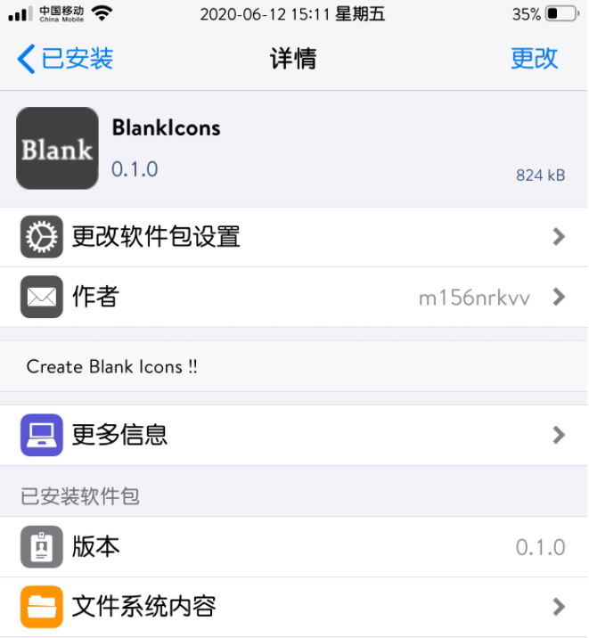 找到插件:“BlankIcons” 如下图,作用是在桌面生成透明图标,在越狱状态下生效,可实现自由摆放图标的效果。