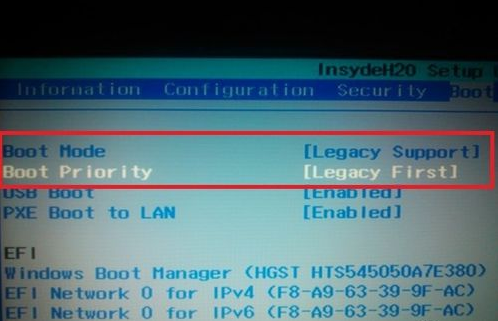 1、将U盘插入电脑,开机显示lenovo品牌界面时,迅速按 Fn+F2组合键,进入BIOS界面,按左右方向键,选择boot选项卡,将Boot Mode与Boot Priorty设置为下图
