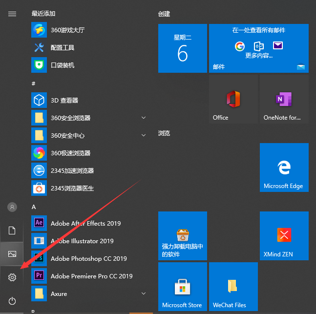 1、点击开始菜单之后,在左侧点击设置图标进入设置。