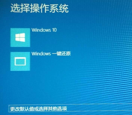 1、按下开机键启动电脑,默认会进入到系统选择的界面,按Tab键,切换到最下面的 更改默认值或选择其他选项,点击回车键