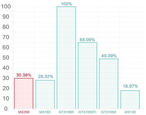 2、移动版的 GeForce GTX 1050 与桌面版拥有相同的 CUDA 核心数量,两者的差异在于频率,因此可以说GTX1050笔记本性能与桌面显卡没啥区别。那么这样就好区分了,MX250作为马甲卡,完全可以参考上一代MX150性能,这张显卡规格与桌面卡GT1030相同,主要也是频率差别。